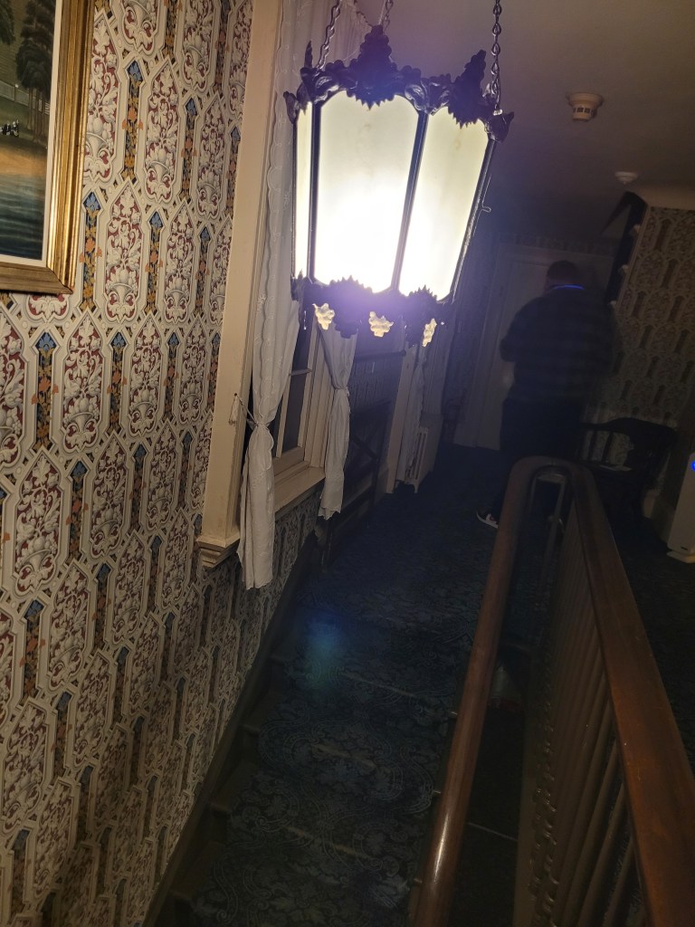 Taken on 10/29/2022 during the final Ghost Tour of the season, the following photo series shows a possible apparition descending the staircase at the center of Raynham Hall. The change is most apparent in the last photo.