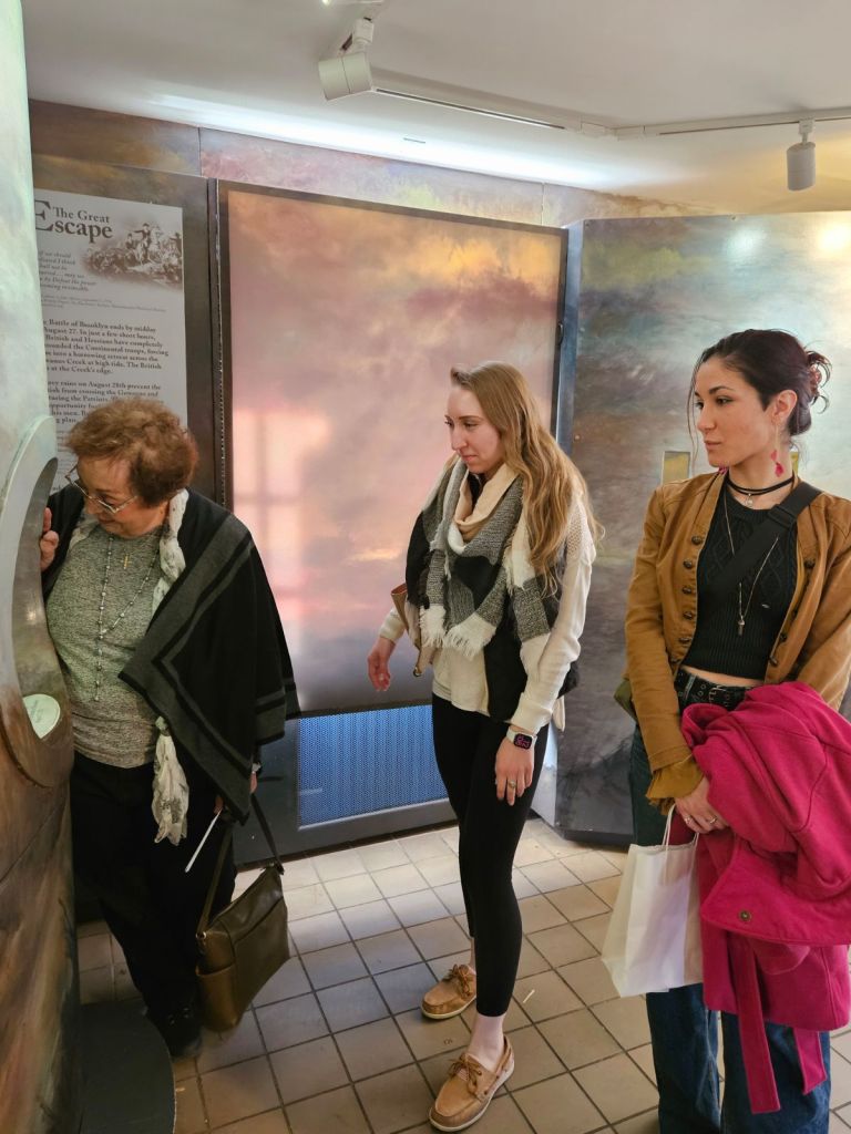My English professor was called for jury duty (unluckily for her) but because she had to cancel class on my birthday, I got to enjoy this fabulous field trip and learn a whole lot about the Battle of Brooklyn — the momentous August 1776 defeat in which the Continental Army was driven out of Long Island and Manhattan completely, so that lower New York became the Royal Army’s fortress for the remaining 7 years of the American War for Independence. Hence so many spies here.